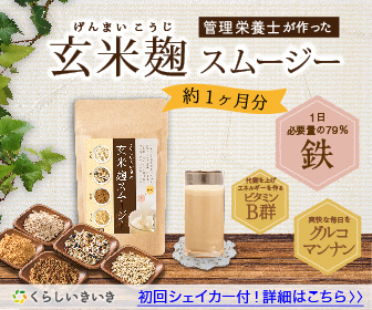 玄米麹スムージー」は、くらしいきいき株式会社が手がける、健康と美容を同時にサポートする粉末タイプのスムージーです。発酵食品として注目される玄米麹を中心に、雑穀、きな粉、黒糖などの和素材をバランスよく配合し、毎日の食生活に取り入れやすい形で仕上げられています。忙しい現代人でも無理なく続けられるよう、手軽さと栄養バランスの両立を重視して開発されているのが特徴です。